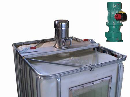 Oft müssen nach Transport und Lagerung abgesetzte Bestandteile in den IBC-Containern vor der Weiterverarbeitung aufgerührt werden. Mit stationären oder mobilen Containerrührern oder -rührwerken können einfache Produktionsschritte, wie Verdünnen oder Konfektionieren, direkt im Container selbst durchgeführt werden. Deshalb sind einfache Containerrührwerke mit verstellbaren Traversen und höhenverstellbaren Rührwerken für solche Standardaufgaben im Umgang mit niedrig- bis mittelviskosen Flüssigkeiten die wirtschaftlichste Lösung.