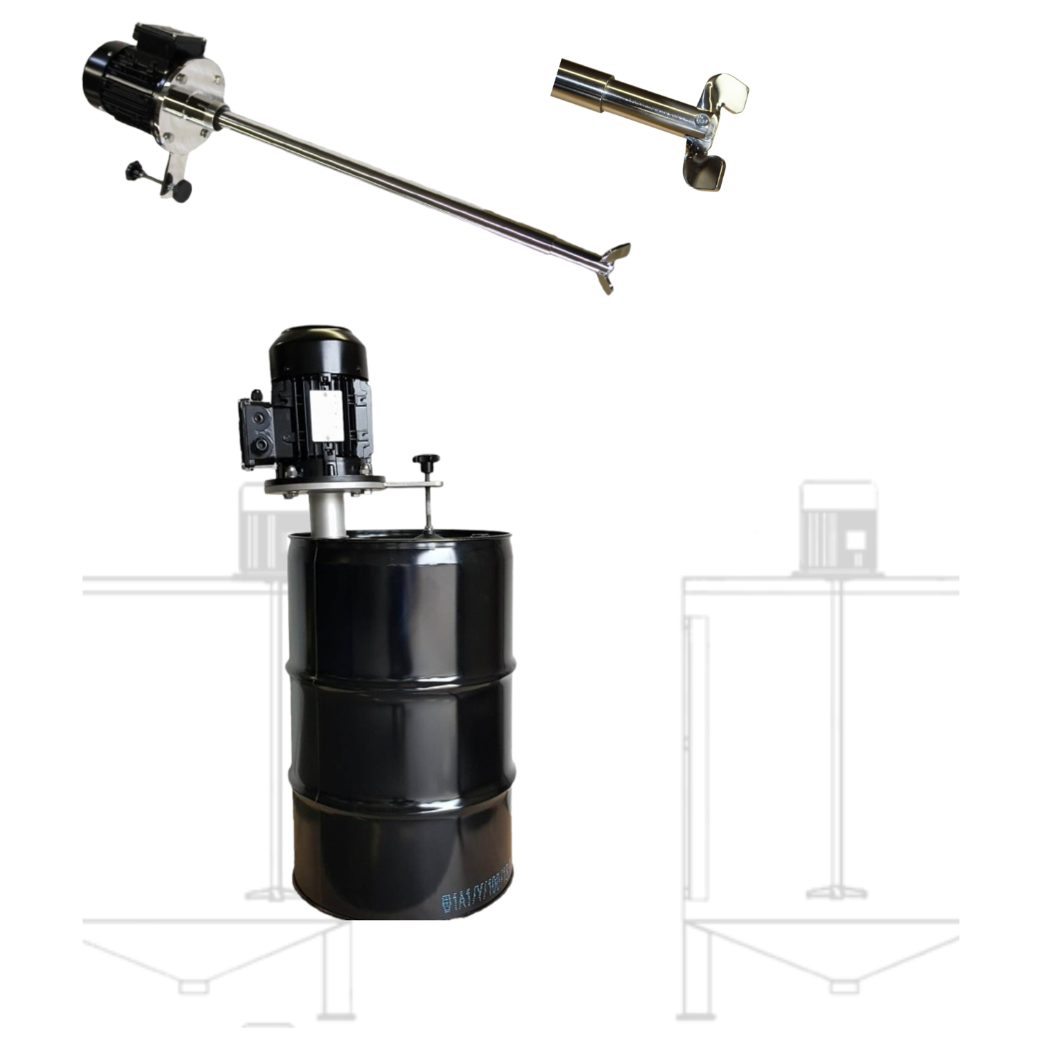 Praktische und leicht zu handhabende Rührer, die optimal für das Mischen und Homogenisieren von Flüssigkeiten in Standardfässern geeignet sind.